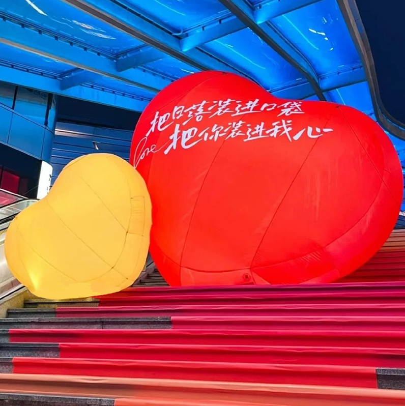 The love inflatable balloon can be used to create a beautifully romantic setting for a Qixi Festival date. You can decorate a scenic spot with floating heart-shaped balloons, setting the stage for a proposal or an intimate dinner. These balloons could even be customized with Chinese characters or symbols of love, such as the word "爱" (love), or an engraving of a romantic poem or couple's initials. The soft glow of the balloons, especially if combined with lighting, enhances the romantic mood, creating an atmosphere that feels both traditional and contemporary.