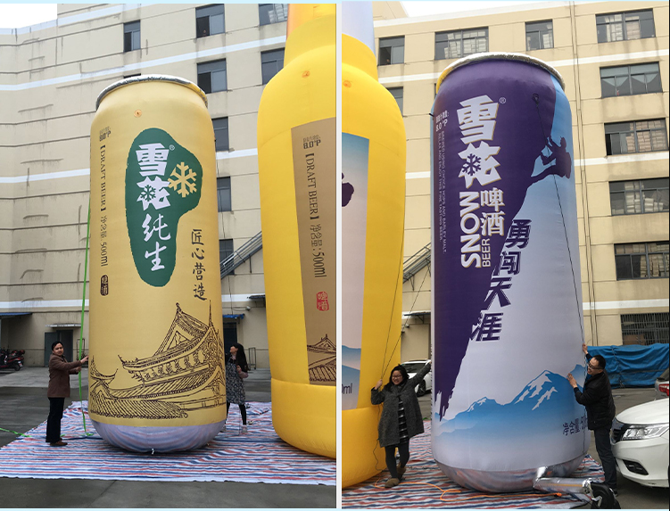 These models play an important role in brand advertising. They are like silent salesmen, showing the brand's image and featured products in front of the public. For beer brands such as Snow Beer and Budweiser, the display of their inflatable bottle models can stimulate consumers' desire for refreshing beer on hot summer days and attract them to nearby sales points to buy. The inflatable can models of Coke and Pepsi, with their bright colors and familiar logos, evoke people's memories of refreshing carbonated drinks, especially in the square area where young people gather, which is more likely to arouse their interest and resonance.