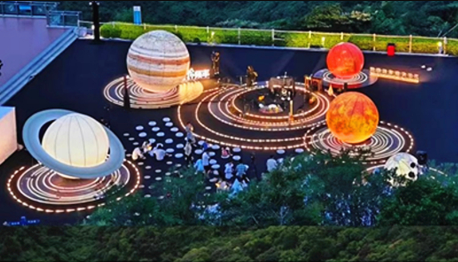 These inflatable astronauts, often towering over onlookers, are a sight to behold. Their illuminated suits, coupled with the glow of surrounding planets, create a stunning nighttime spectacle. The intricate details, from the astronaut's helmet to the texture of the spacesuit, are meticulously crafted to evoke a sense of wonder and awe.