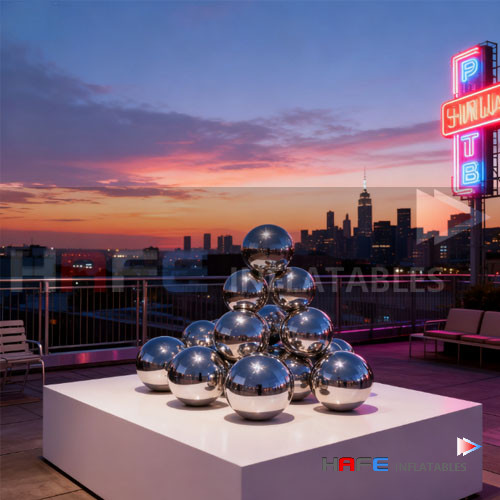 Eye-Catching Design: The reflective surface of the Inflatable Mirror Balls creates stunning visual effects, reflecting light and surroundings to create a vibrant and glamorous atmosphere.