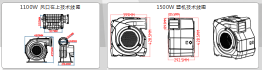 Model | 1100W Air outlet on upper molding machine | 1500W Air outlet on upper molding machine | 1500W MAX Plastic fan | 1800W MAX Plastic fan |