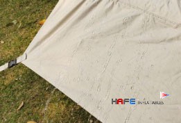 Although the tent is water-resistant, we recommend using waterproof ground sheets, camping away from areas prone to water accumulation, and regularly clearing water from the roof. These tips will help prevent water seepage during heavy rain.